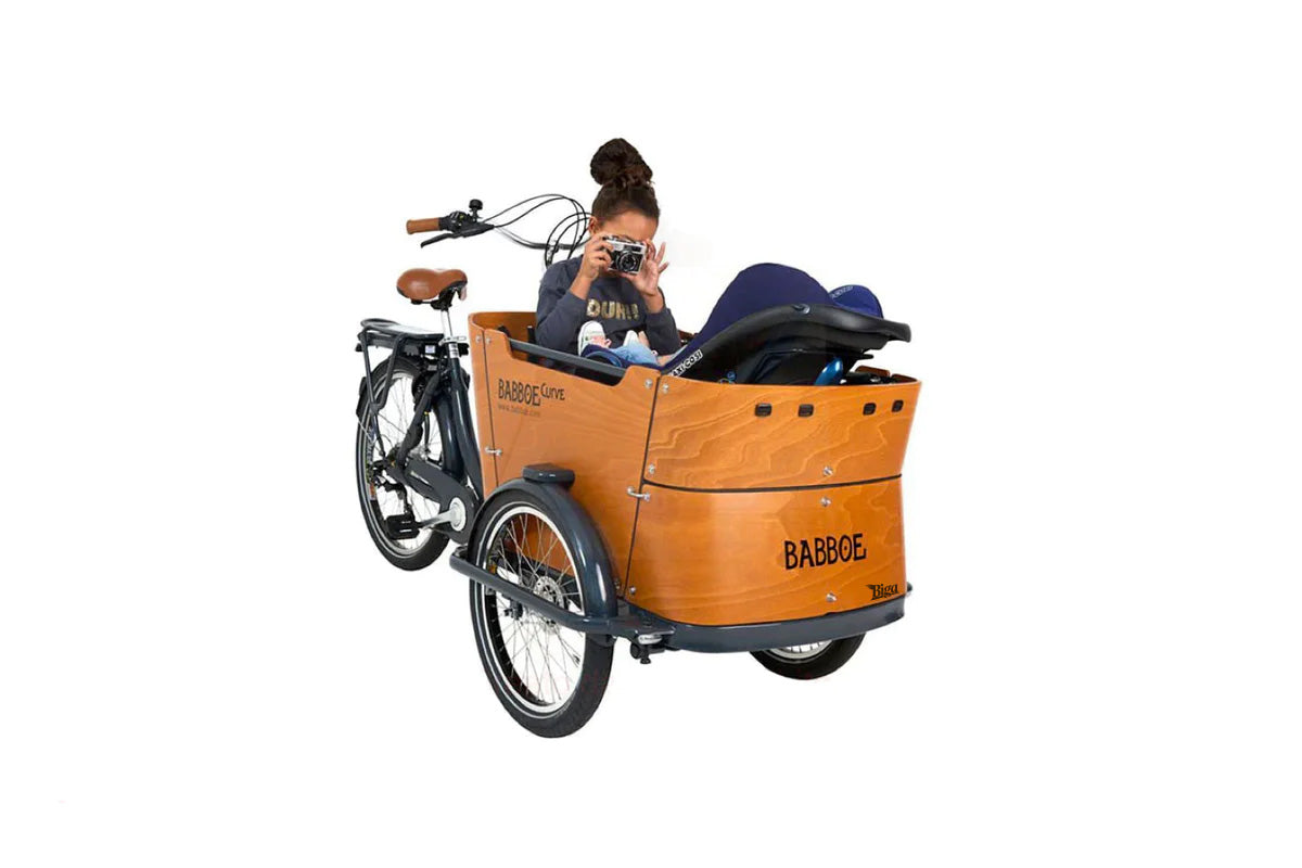 La bici da carico elettrica Babboe Curve è un'elegante bici da carico a tre ruote con standard di alta qualità ad un prezzo conveniente. Una bici da carico con la quale puoi farti vedere! La bici da carico Curve è bella, di alta qualità e intelligente.Grazie al supporto elettrico della pedalata, hai il vento sempre con te!