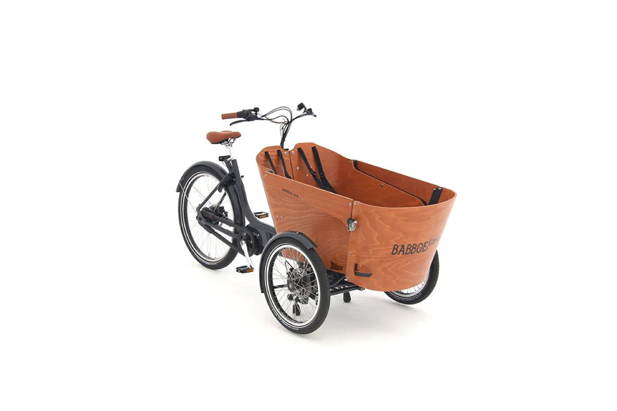 La cargo bike Babboe Go-E è un'elegante cargo bike elettrica a tre ruote dagli elevati standard qualitativi ad un prezzo accessibile.Le eleganti forme rotonde conferiscono alla bici da carico un aspetto lussuoso.