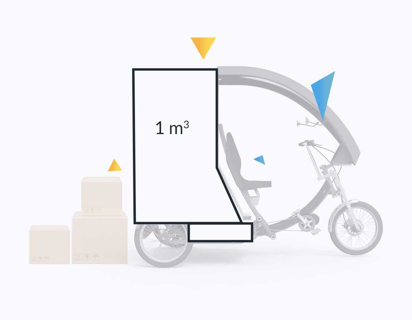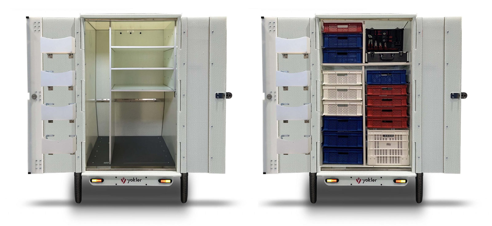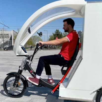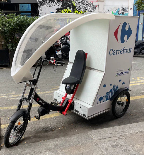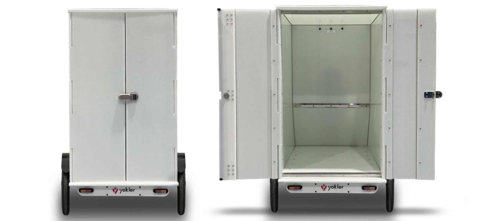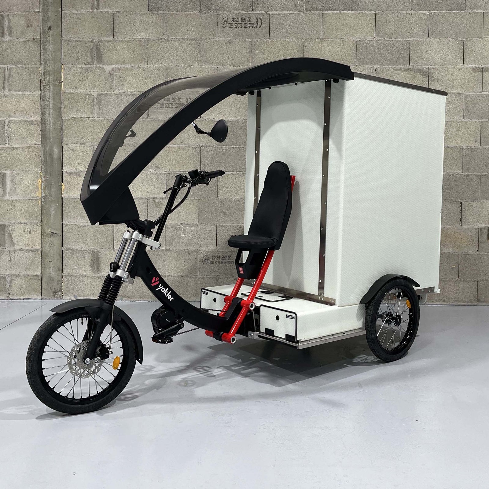 Il triciclo Yokler, con la sua struttura maneggevole e la pedalata assistita, è un veicolo a tre ruote ideale per il trasporto urbano di merci, offrendo facilità d'uso e praticità.